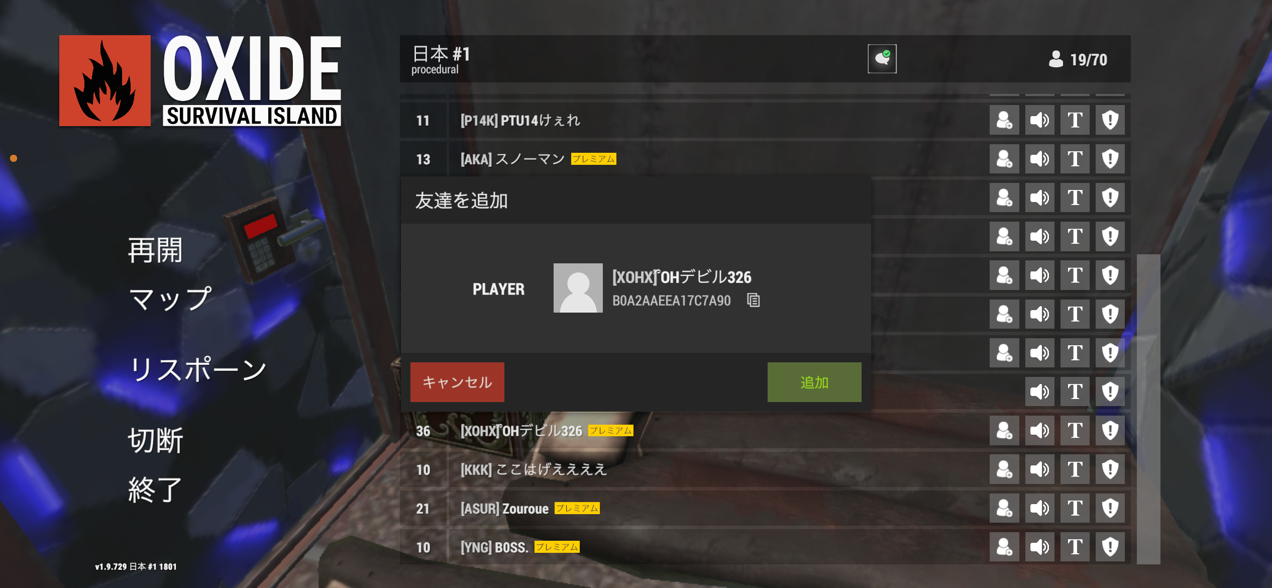 実際に壁抜けをしたプレイヤーの名前は「TOKYO」です。当時は下の画像の名前の様に何処かのチームに属してもおらず、ただの「TOKYO」という名前でしたので、必ずしも下の画像のプレイヤーが同一人物とは限らないのですが…。それでもヘリによる壁抜けが対処されてるかもわからないので、そういったやり方で物資が盗まれる事があるのでご注意下さい。